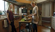 Sowas wie FamilieGesas (Marlene Morreis) Sohn Mats ist verschwunden. Iris (Katja Weitzenböck) serviert ihr das Frühstück und versucht sie zu beruhigen.Bild: © ARD Degeto/Bettina Strauss