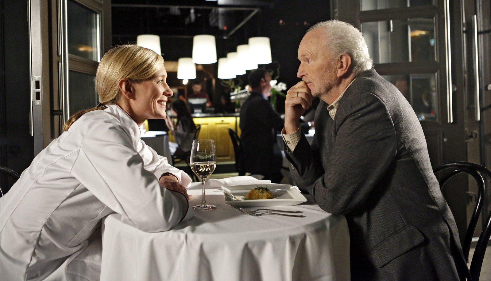 Alles auf AnfangRichard (Michael Gwisdek) besucht seine deutsche Freundin Iris (Katja Weitzenböck) in ihrem Restaurant und bittet sie, an seiner Geburtstagsfeier zu kochen.Bild: © ARD Degeto/Bettina Strauss