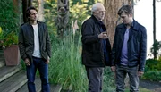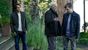 Alles auf AnfangRichard (Michael Gwisdek, Mitte) stellt Karens Lover Josh (Alexander Calvert) zur Rede, ihr Vater Adrian (Robert Seeliger) schaut zu.Bild: © ARD Degeto/Bettina Strauss