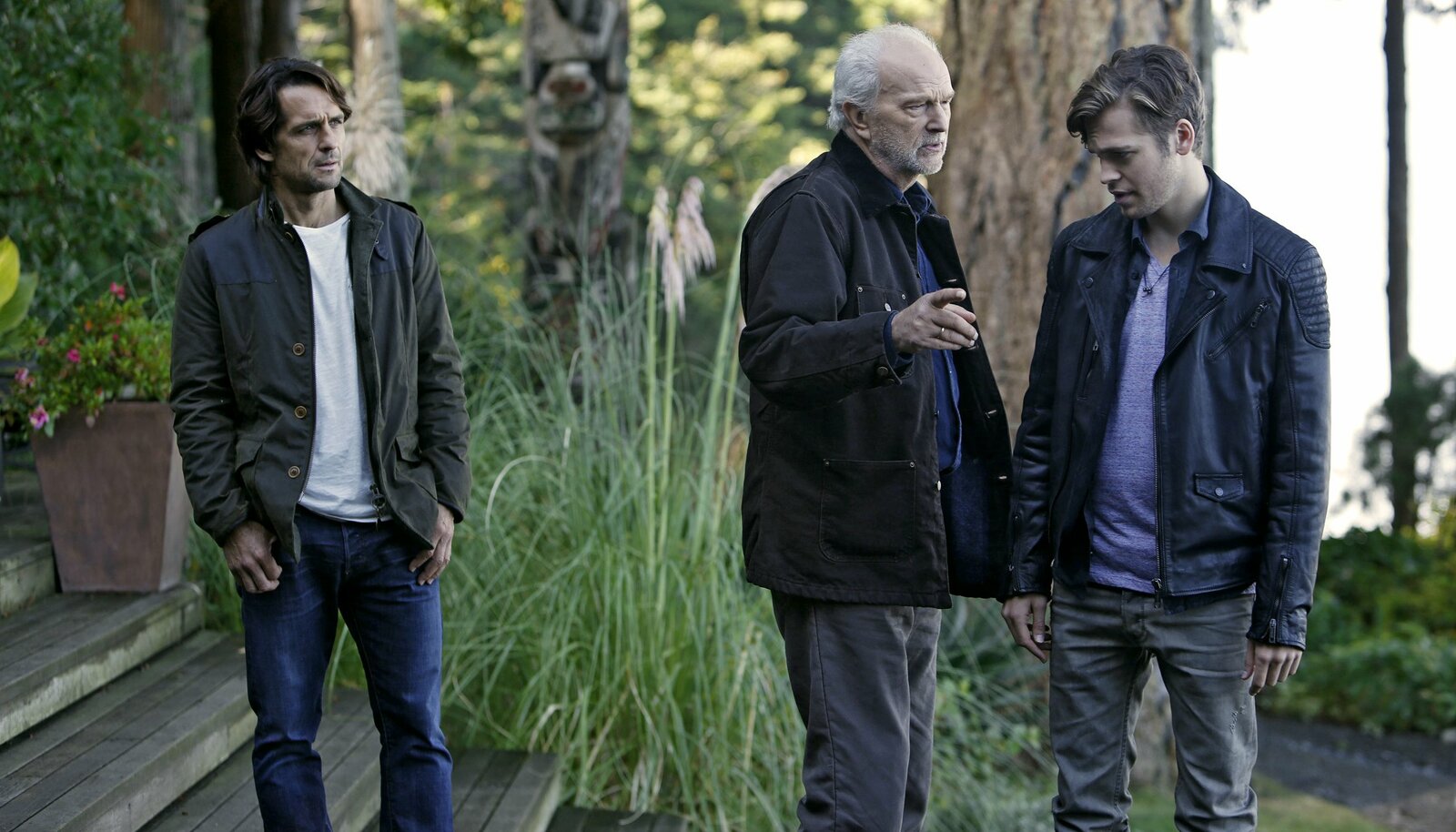 Alles auf AnfangDer aus norddeutschland stammende und pensionierten Bauingenieur Richard (Michael Gwisdek, re.) bewohnt mit seiner störrische Enkelin Karen (Sonja Gerhardt) eine Lodge in Vancouver Bay. Nachdem er von seiner schweren Erkrankung erfahren hat, macht er Karens leiblichen Vater Adrian (Robert Seeliger) ausfindig.Bild: © MDR/Degeto/Bettina Strauss