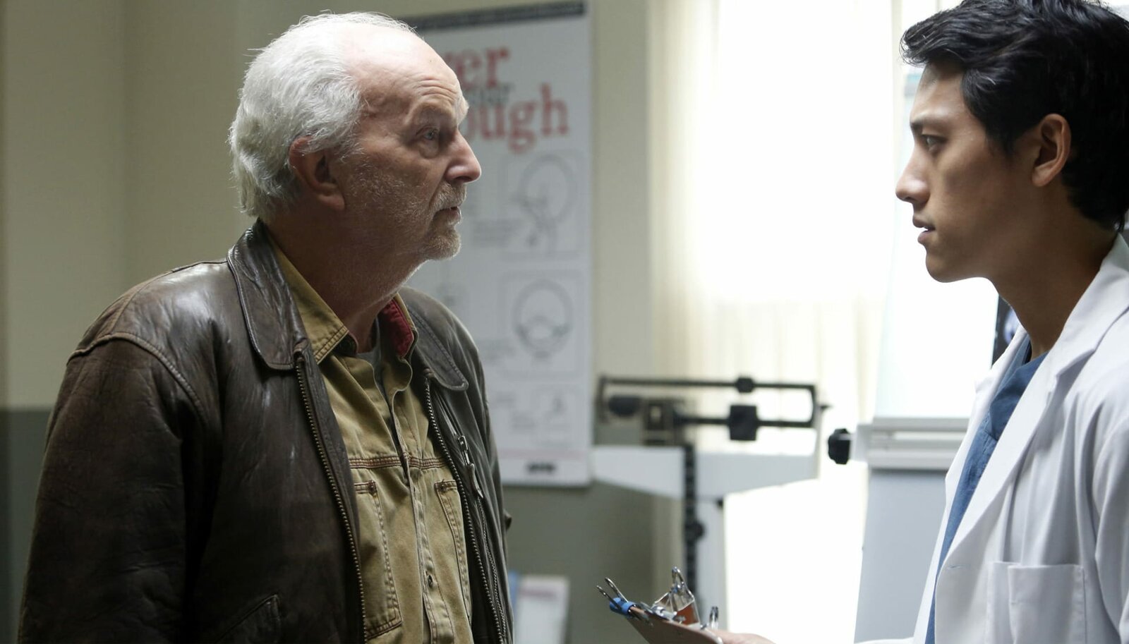 Alles auf AnfangRichard (Michael Gwisdek, li.) bekommt von einem Arzt (Anthony Shim) die schockierende Diagnose mitgeteilt, dass er nicht mehr lange zu Leben hat.Bild: © MDR/ARD Degeto/Bettina Strauss