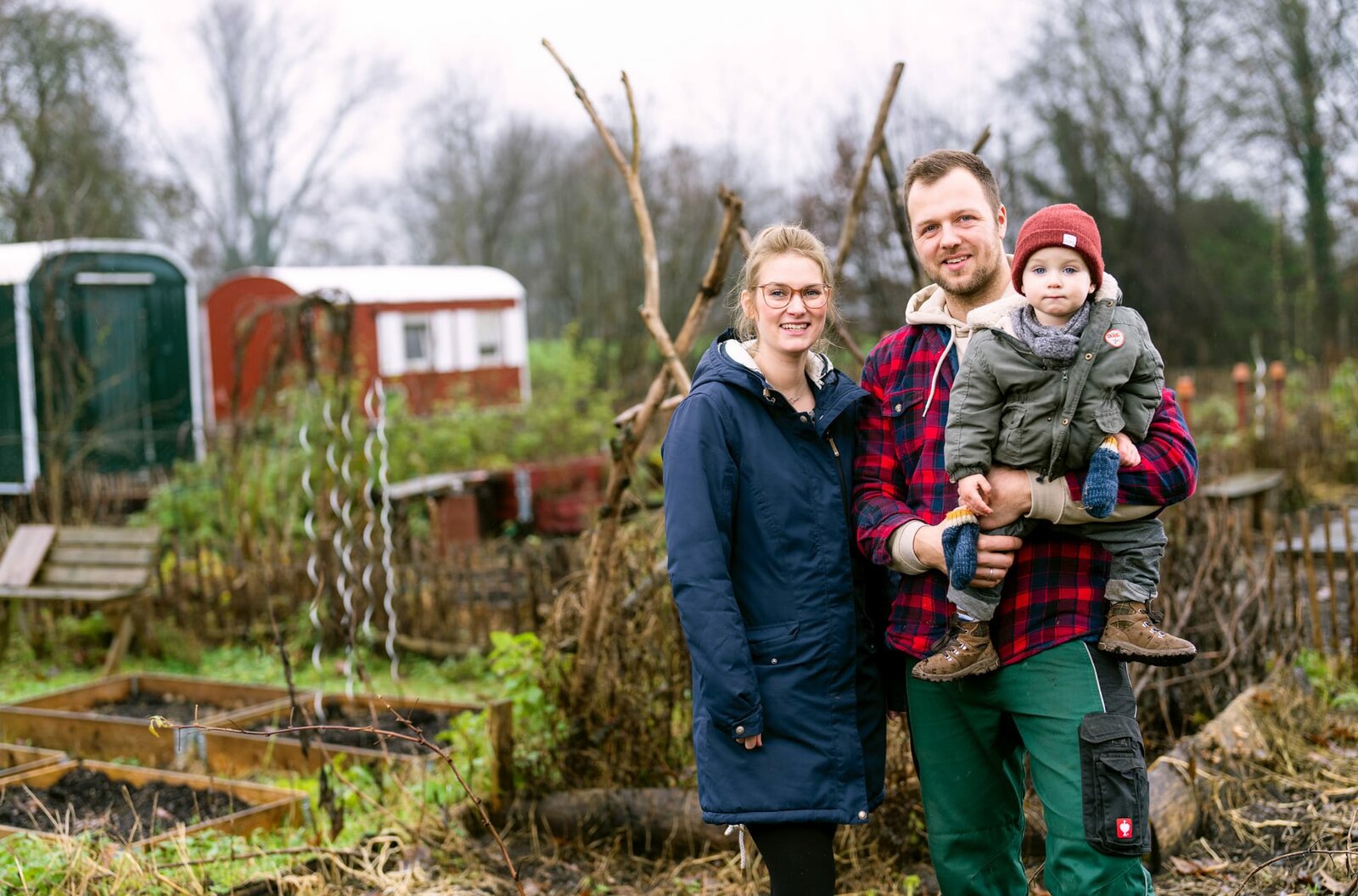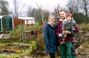 Großprojekt SchweineparadiesMira (l, 30 J.) und Daniel (29 J.) mit Oskar (1 J.) auf dem Permahof Neuland bei Borken.Bild: © WDR/Ben Knabe / WDR Kommunikation/Redaktion Bild
