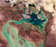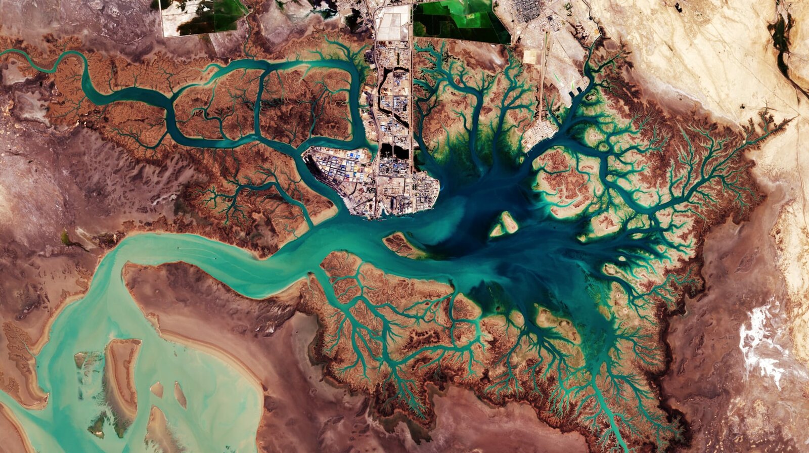 Fantastische FarbenEin Hafen an der iranischen Küste.Bild: © ESA / NASA