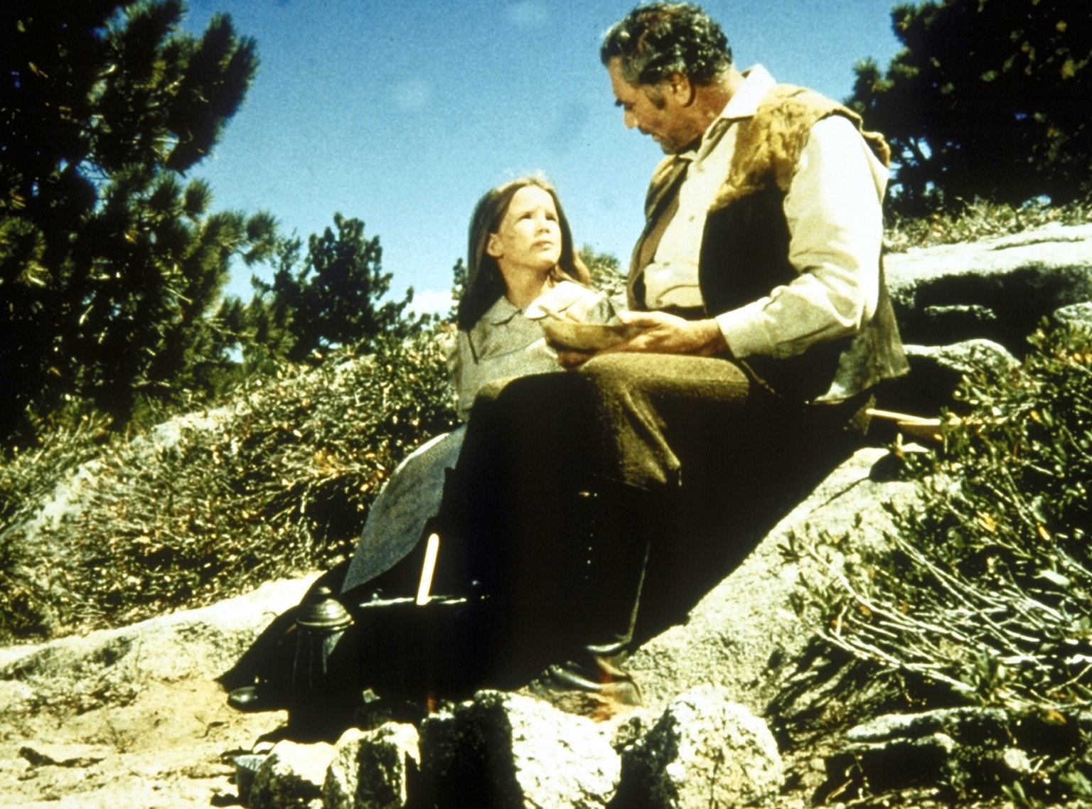 Charles (Michael Landon, r.) hat endlich seine verschwundene Tochter Laura (Melissa Gilbert, l.) wieder gefunden.