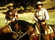Charels (Michael Landon, r.) und sein Freund Edwards (Victor French, l.) suchen nach Laura.