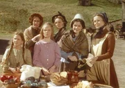 (v.l.n.r.) Caroline (Karen Grassle), Laura (Melissa Gilbert) und Mary (Melissa Sue Anderson) beobachten Charles und Carrie.