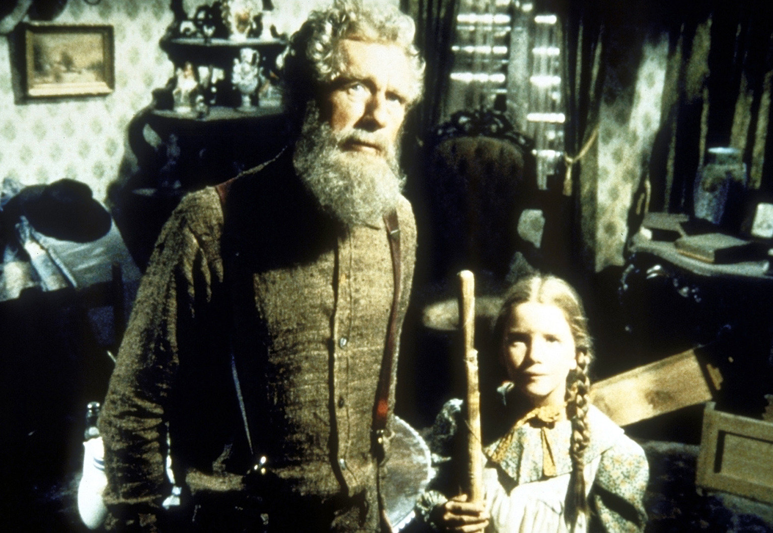 Charles (Michael Landon, l.) erzählt Carrie (Lindsay Sidney Greenbush, r.) eine Weihnachtsgeschichte.