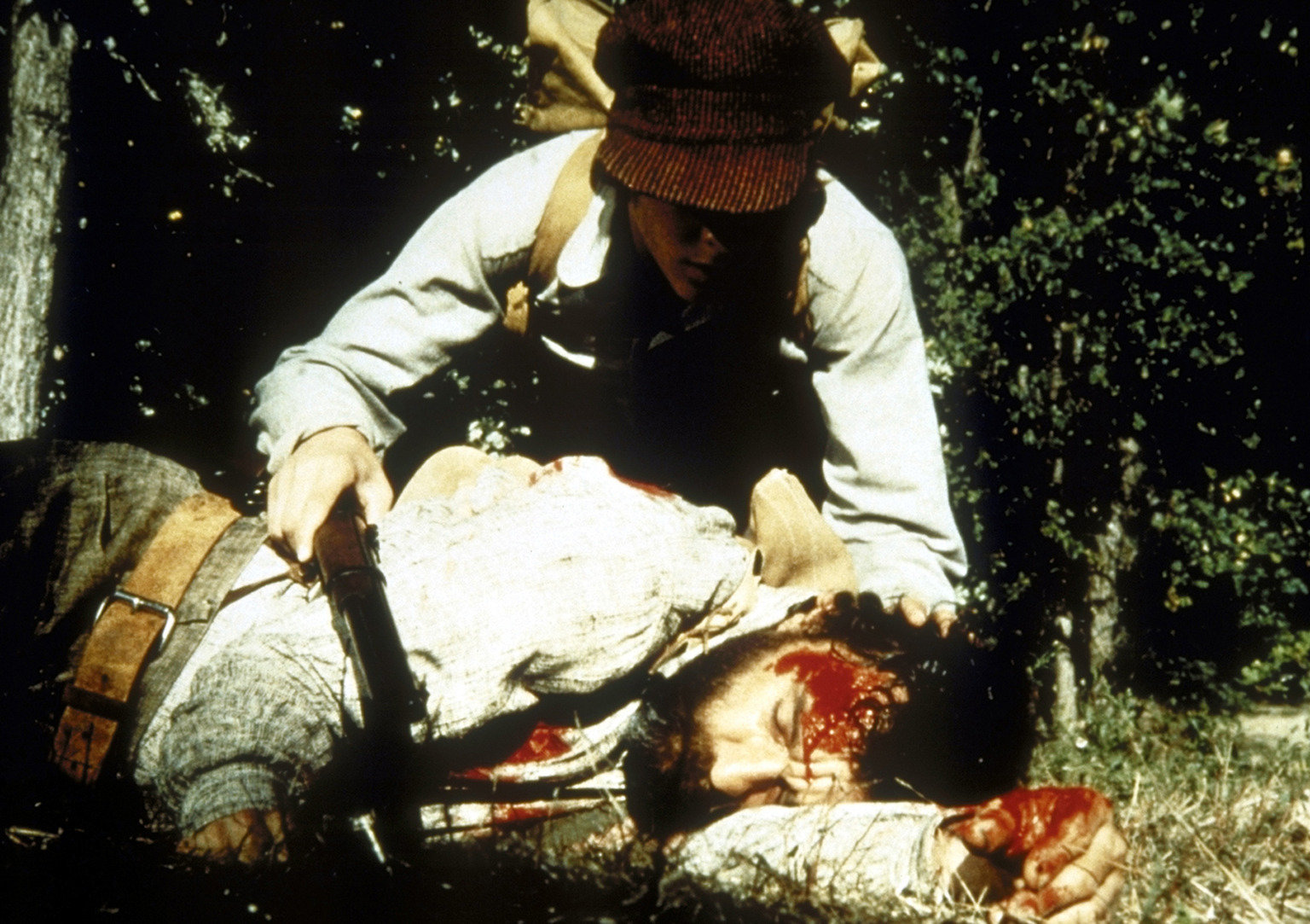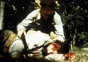 Das JagdgewehrNach dem Angriff eines Bären liegt Edwards (Victor French, liegend) schwer verletzt auf dem Boden. Er bittet John (Radames Pera), Hilfe zu holen.Bild: © ProSieben Media AG © Worldvision
