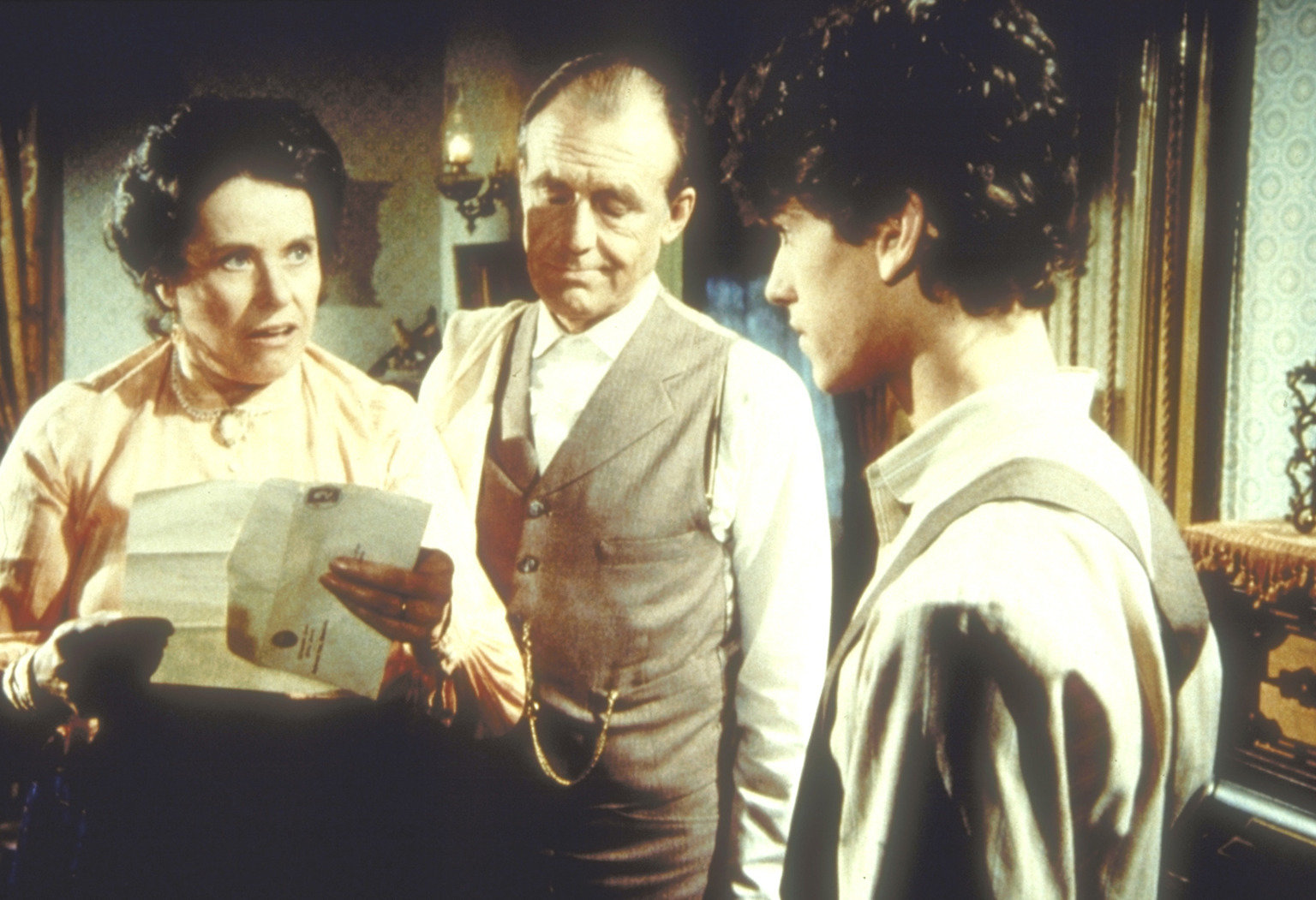 Universität oder Hochzeit?Harriet Oleson (Katherine MacGregor, l.) ist entsetzt, dass ihr Sohn Willie (Jonathan Gilbert, r.) die Aufnahmeprüfung für die Universität nicht bestanden hat. Vater Nels (Richard Bull, M.) nimmt das nicht so tragisch.Bild: © ProSieben Media AG © Worldvision