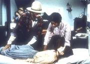 Ein Mann fühlt sich schuldigEdwards (Victor French, l.) und Hester-Sue (Ketty Lester, r.) legen die verletzte Elisabeth (Tammy Laureen, unten) in Doc Bakers Praxis aufs Bett. Die ebenfalls verletzte Constance (Michele Marsh, hinten) geht Baker zur Hand.Bild: © Worldvision Lizenzbild frei