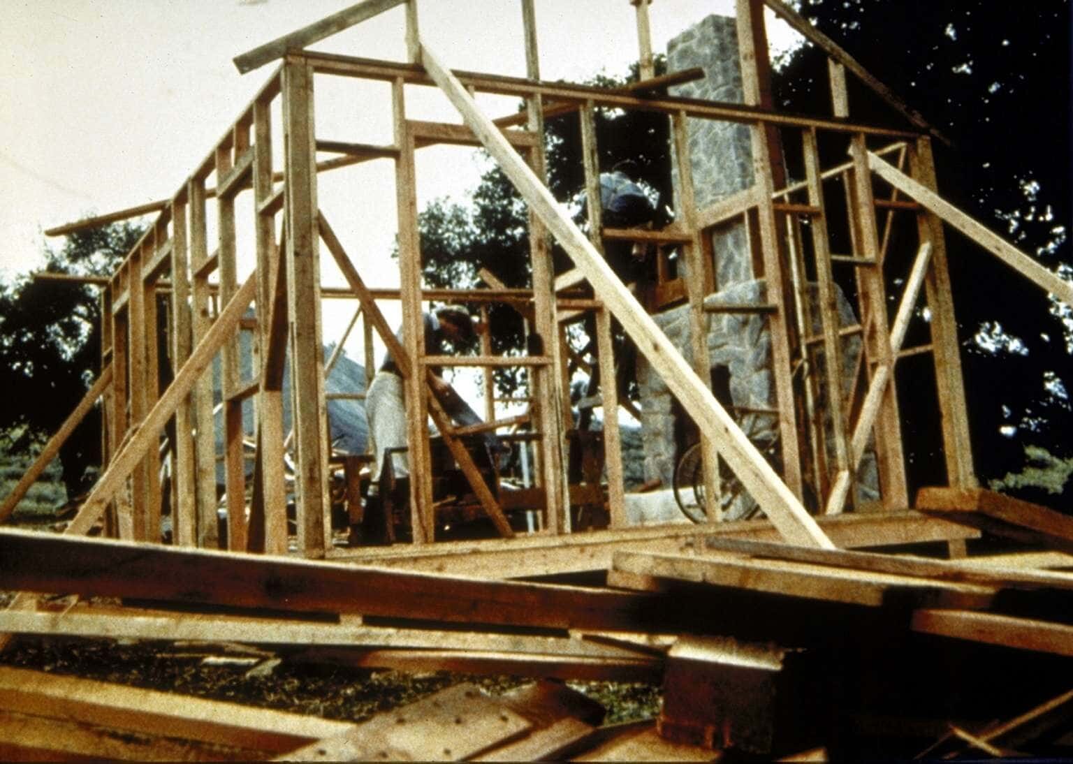 Vom Schicksal gebeutelt (1)Charles (Michael Landon, r.) baut mit seinem Schwiegersohn Almanzo (Dean Butler, l.) ein neues Haus für die Familie.Bild: © Sat.1 Gold