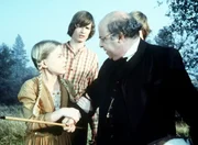 Hilfssheriff wider Willen(v.l.n.r.) Caroline (Karen Grassle), Laura (Melissa Gilbert) und Mary (Melissa Sue Anderson) beobachten Charles und Carrie.Bild: © Sat.1 Gold
