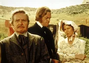 Das JagdgewehrGrace Edwards (Bonnie Bartlett, l.) kniet am Krankenbett ihres Mannes Isaiah (Victor French). Dr. Baker (Kevin Hagen, M.) und Nachbar Charles Ingalls (Michael Landon, r.) stehen ihr zur Seite.Bild: © ProSieben Media AG © Worldvision