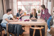 Valentin geht aufs GanzeSina (Valea Katharina Scalabrino, 2.v.l.) ist gekränkt, als Elli (Nora Koppen) ihr im Beisein von Bambi (Benjamin Heinrich, 2.v.r.) und Paco (Milos Vukovic) weiterhin die kalte Schulter zeigt.Bild: © RTL / Stefan Behrens