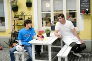Chris (Jan Ammann, r.) lässt sich von Matteo (Jashan Gupta) überzeugen, seine Entscheidung ernst zu nehmen.Bild: © TVNOW / Stefan Behrens