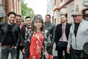AufbruchUmringt von ihren Freunden (stehend v.l.) Tobias (Patrick Müller), Easy (Lars Steinhöfel), Caro (Ines Kurenbach), Malte (Stefan Bockelmann), Ute (Isabel Hertel), Henning (Benjamin Kiss), Irene (Petra Blossey), Rufus (Kai Noll) versöhnt sich Leonie (Maria Kempken, vorne l.) mit Paco (Milos Vukovic, vorne r.) und verlässt die Schillerallee.Bild: © Passion