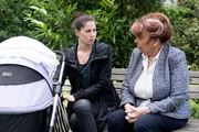 Ein weiser RatAls Roberts Mutter Roswitha (Andrea Brix, r.) zufällig auf die aufgewühlte Sina (Valea Katharina Scalabrino) trifft und von ihren Problemen mit Bambi erfährt, gibt sie ihr einen Rat mit auf den Weg...Bild: © RTL