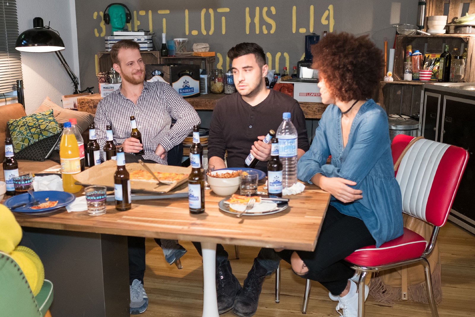 Alles neuSaskia (Antonia Michalsky) lässt sich überreden, Jakob (Alexander Milo) zum Essen bei den Hubers zu begleiten.Bild: © MG RTL D / Stefan Behrens