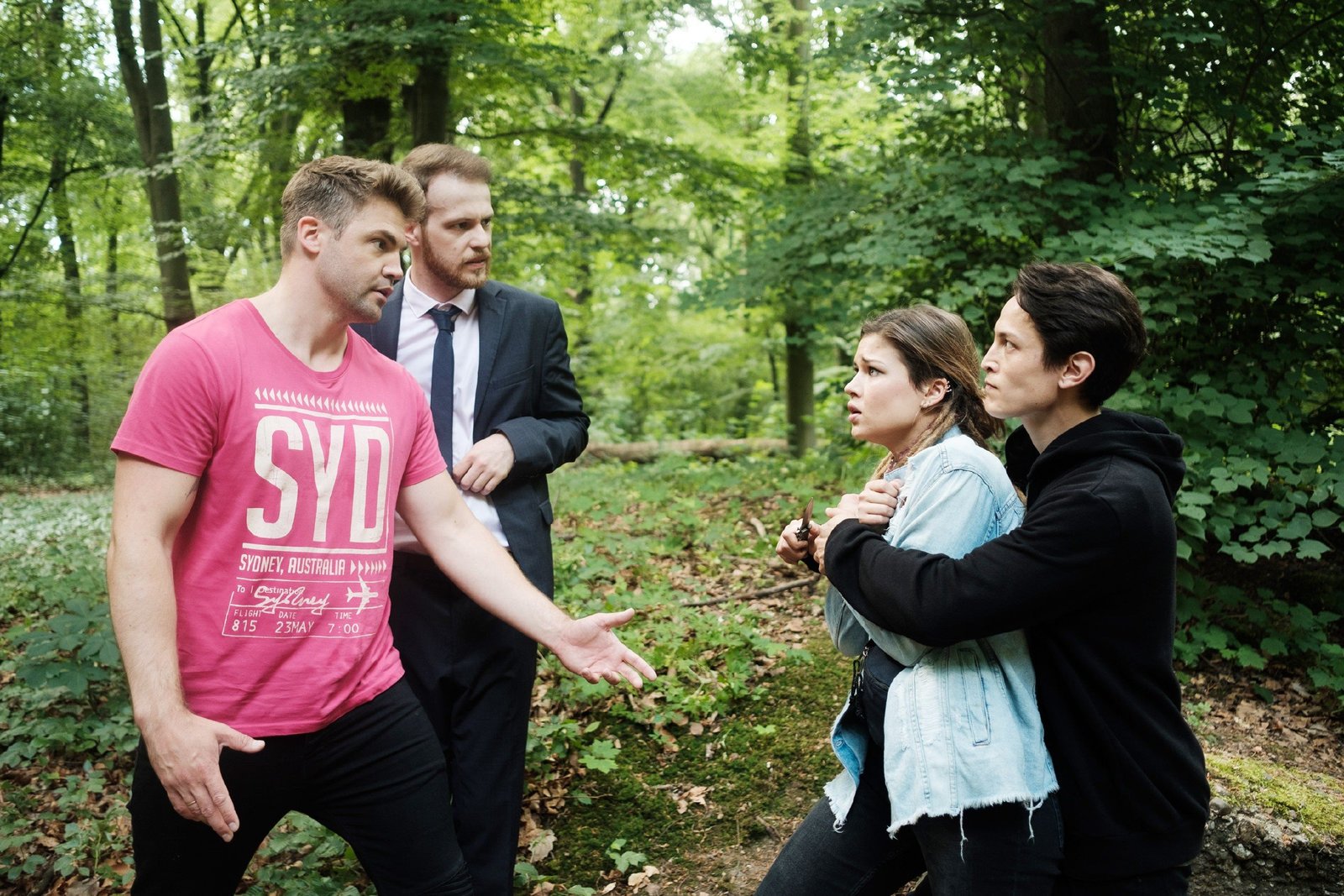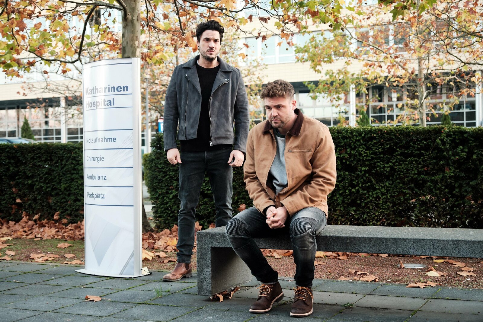 Saskia, Jakob und Bambi bangen um Aarons LebenBambi (Benjamin Heinrich, r.) und Jakob (Alexander Milo) sitzt der Schock in den Knochen.Bild: © TVNOW / Stefan Behrens