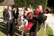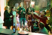 Die Liebe des LebensDie Frischvermählten werden von ihren Freunden gefeiert. V.l.: Tobias (Patrick Müller), Benedikt (Jens Hajek), Leni (Josephine Becker), Vivien (Sharon Berlinghoff), Easy (Lars Steinhöfel), Kira (Barbara Prakopenka), Ringo (Timothy Boldt)Bild: © TVNOW / Stefan Behrens / UU Folge 6245