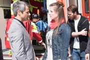 Streit vor GerichtWährend Tobias (Patrick Müller, r.) noch unter dem Einfluss der Ereignisse steht, bedankt sich Benedikt (Jens Hajek) bei Elli (Nora Koppen) dafür, seiner Frau Andrea das Leben gerettet zu haben.Bild: © RTL / Stefan Behrens