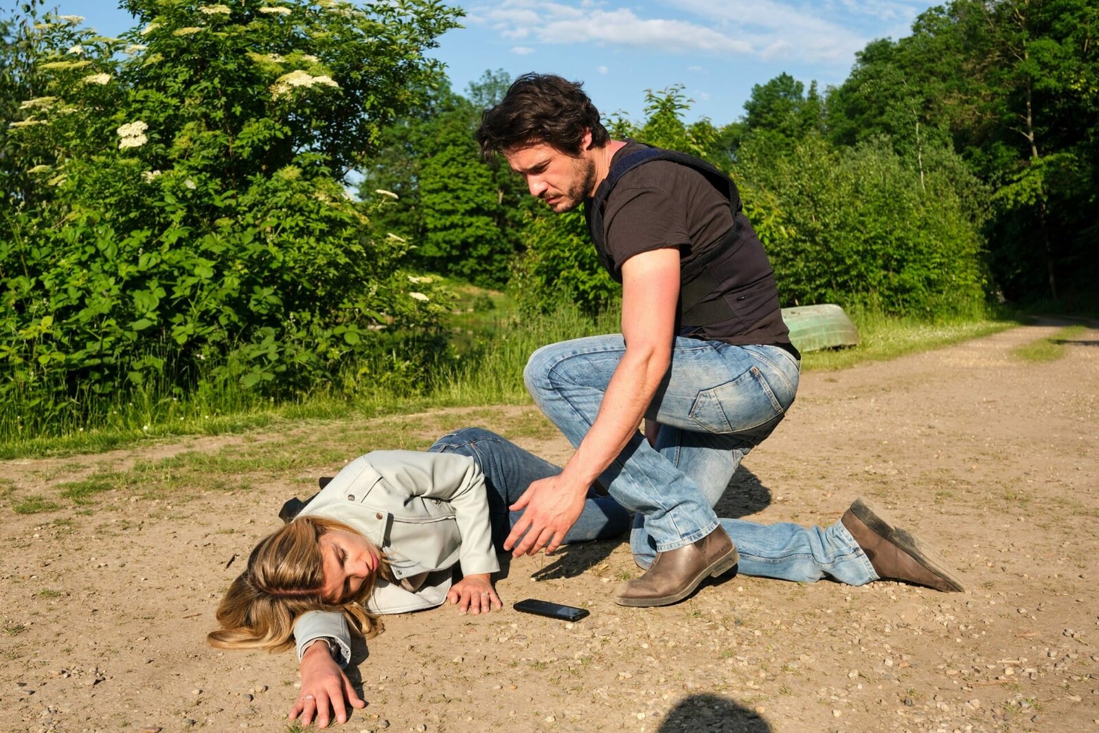 Till und Mareike werden von der Leidenschaft übermanntCorinna (Nina Weisz) versetzt Bambi (Benjamin Heinrich) ungewollt mit der Rückgabe des Colliers in Angst und Schrecken.Bild: © RTL / Stefan Behrens