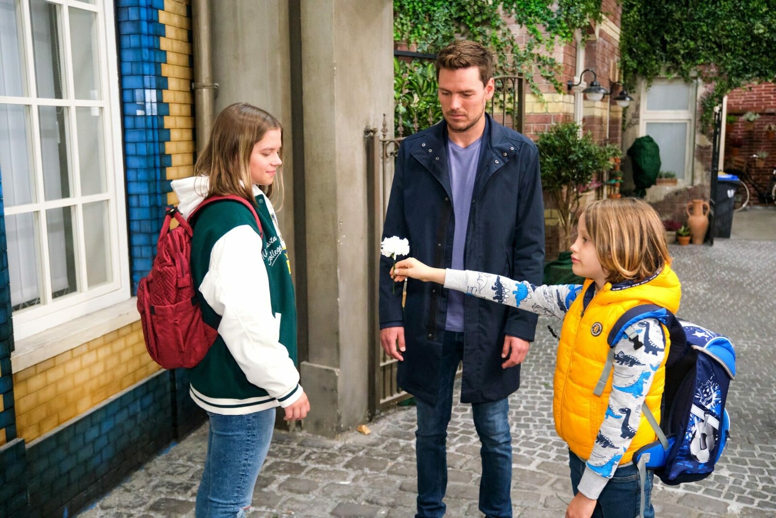 Benedikt legt überraschend vor Conor ein Geständnis abTill (Constantin Lücke, M.) ist amüsiert, als Noah (r.) sich bei Zoe (Lara Picks) als Rosenkavalier entpuppt.Bild: © RTL / Stefan Behrens