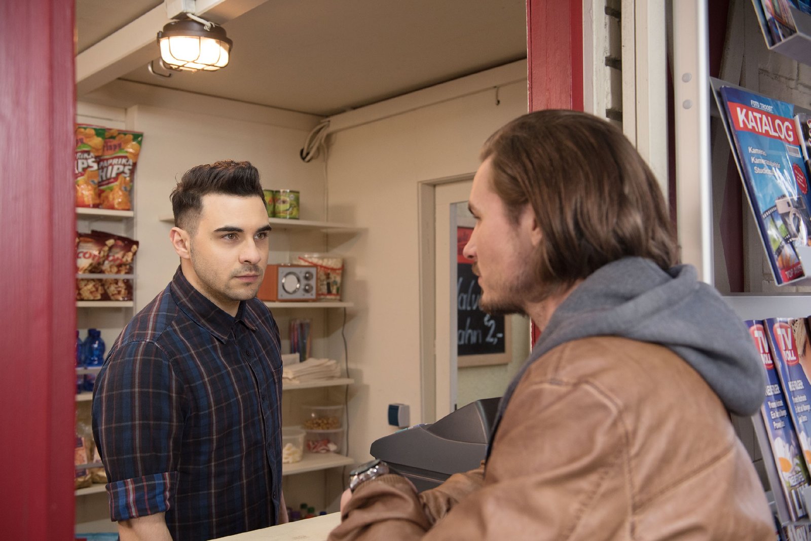Unfreiwilliges DrogenlagerAls Easy (Lars Steinhöfel, l.) erkennt, dass Schrader (Alexander Milz) es mit seinen Drohungen sehr ernst meint, sieht Easy keinen anderen Ausweg mehr, als seinen Kiosk zum Drogenlager zu machen.Bild: © Stefan Behrens