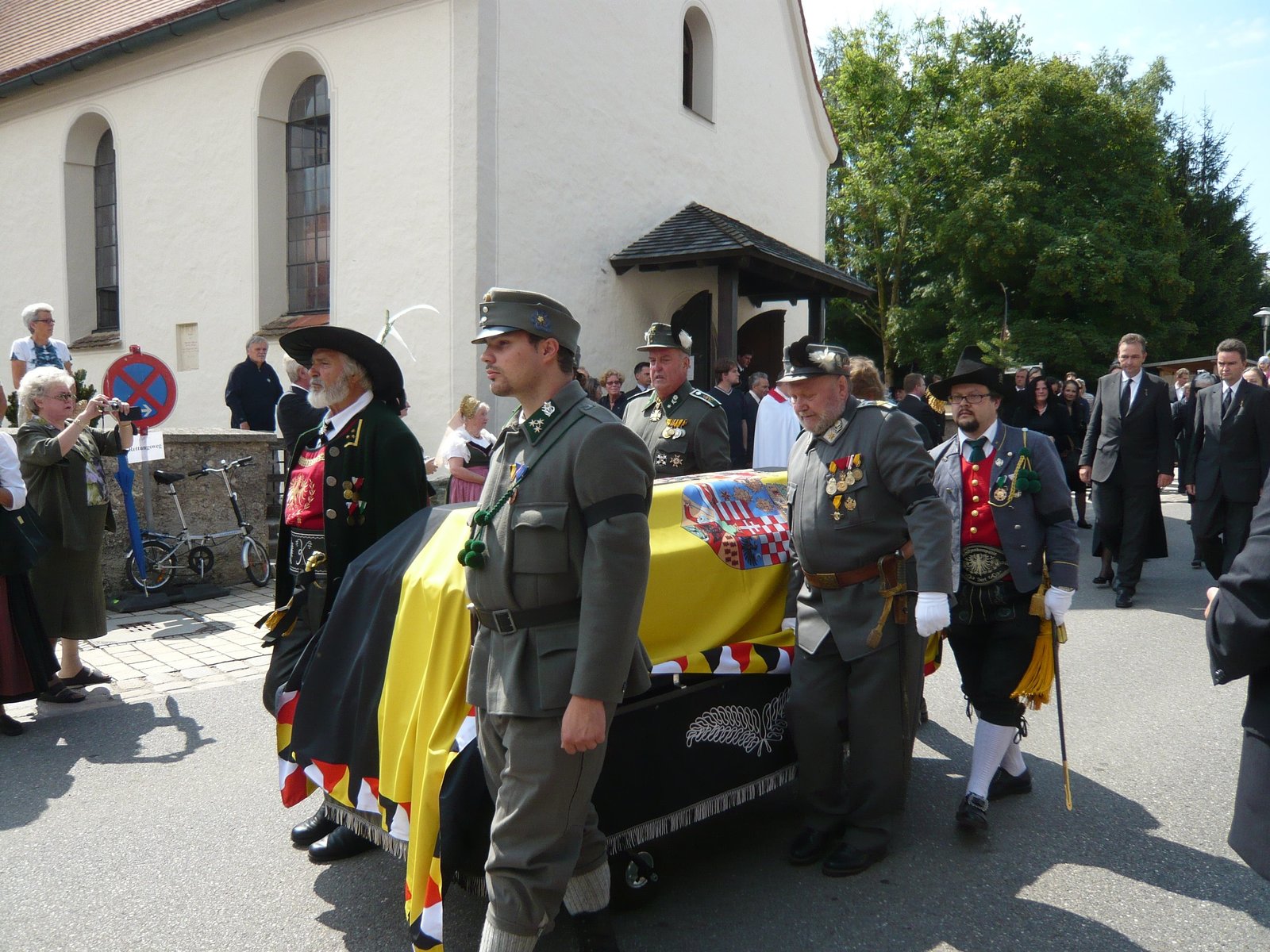 Die letzte Reise eines Habsburgers - Von Pöcking in die Wiener KaisergruftKaiserschützen und Kaiserjäger sowie Schützengruppen aus dem gesamten Tirol bilden die Sargbegleiter, dahinter gehen ganz in schwarz gekleidet die Kinder von Otto von Habsburg.Bild: © BR/Ludwig Ott