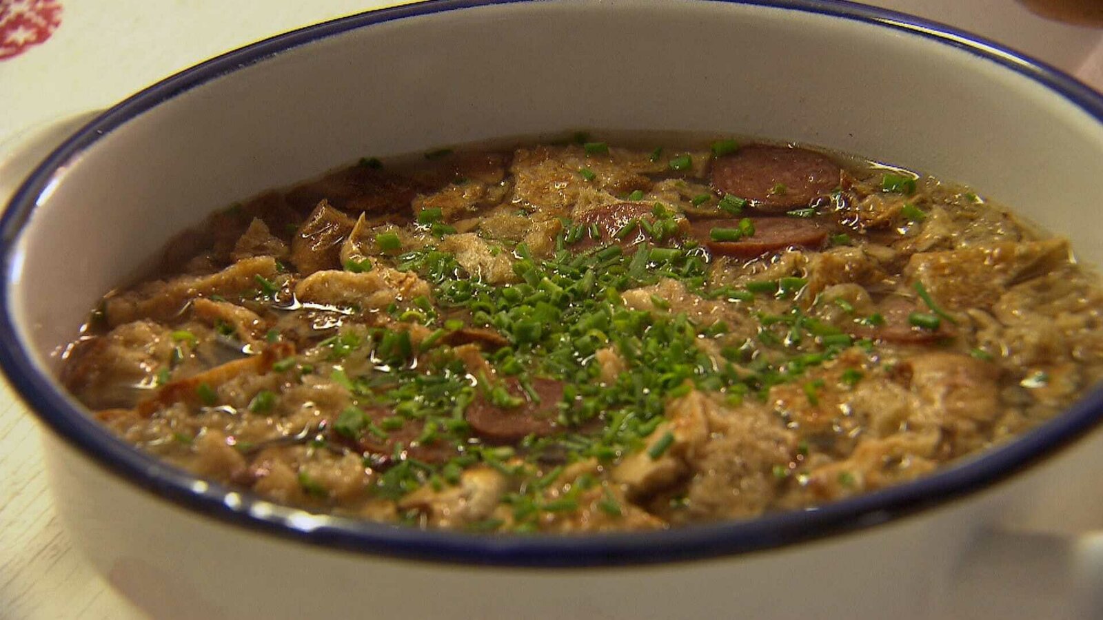 Berggasthöfe und Buschenschänken in SüdtirolEin einfaches Gericht aus dem Ultental - Brotsuppe mit Kaminwurzen.Bild: © Rupert Heilgemeir / BR / BR/Rupert Heilgemeir