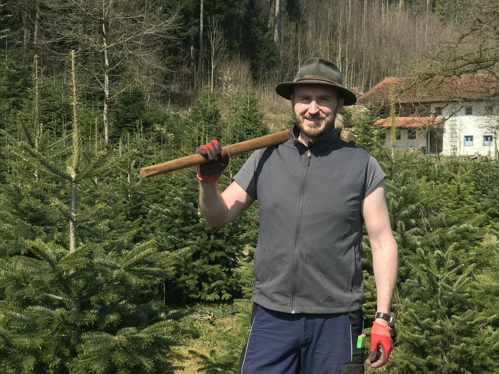 Aus dem Leben der WeihnachtsbäumeHandarbeit ist angesagt. Markus Huber pflanzt junge Setzlinge.Bild: © BR/Matti Bauer