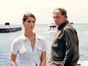Liebe unter weißen SegelnDer Kapitän Gregor Simonis (Miguel Herz-Kestranek) verhält sich kühl und abweisend gegenüber seiner Geliebten Dr. Karen Stendal (Christina Plate).Bild: © SWR/ARD/Degeto