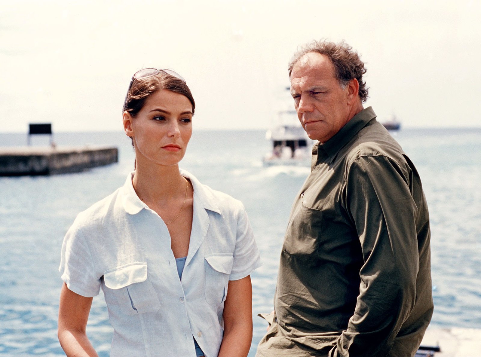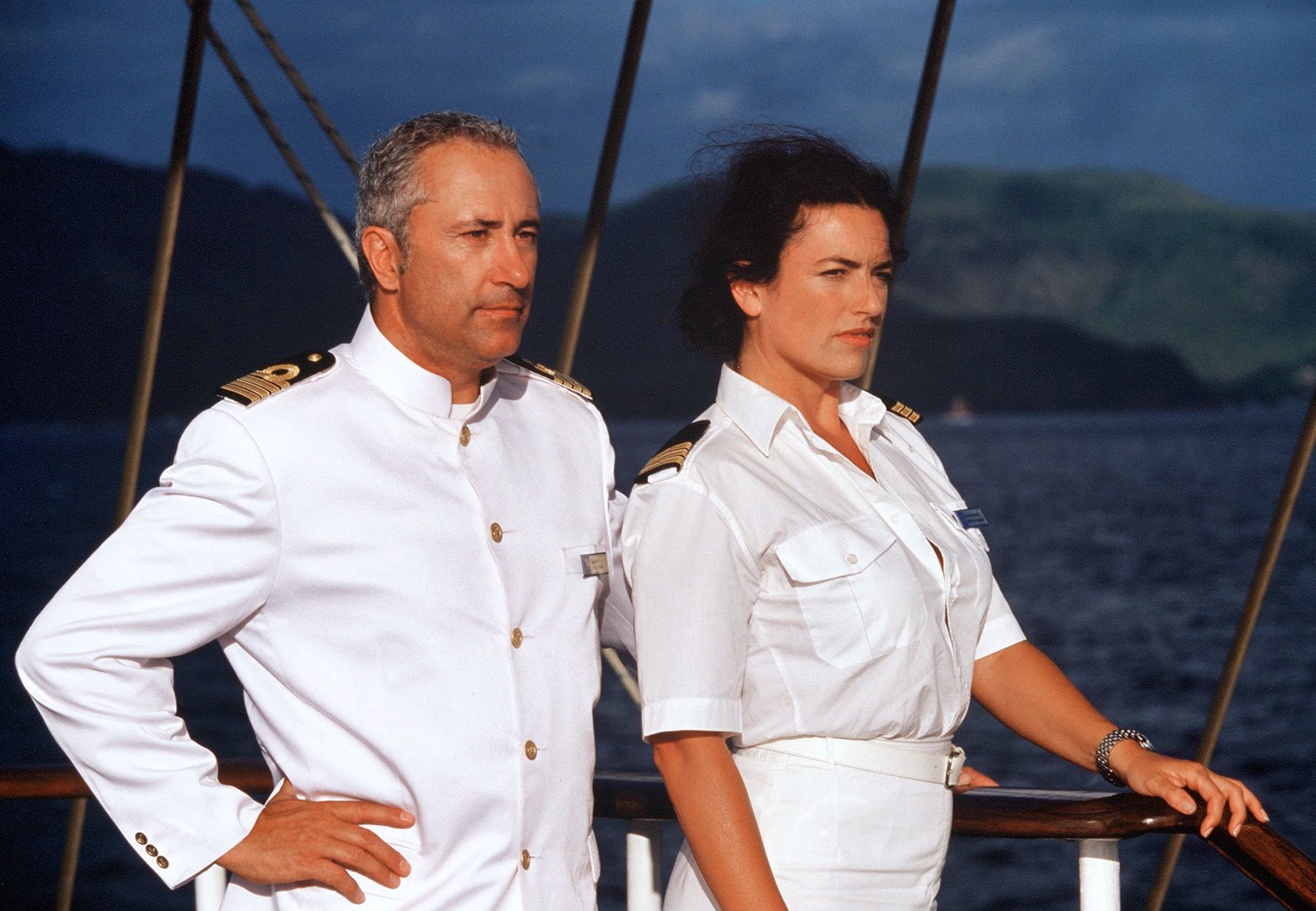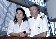 Odyssee der Herzenhr-fernsehen UNTER WEISSEN SEGELN: ODYSSEE DER HERZEN, Spielfilm, Deutschland 2005, Regie: Erwin Keusch, am Donnerstag (16.04.15) um 13:45 Uhr. Kapitän Bernd Jensen (Horst Janson) und seine neue Cruisedirektorin Saskia (Gerit Kling).Bild: © HR/Degeto/Hans-Joachim Pfeiffer