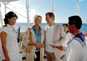 Frühlingsgefühlehr-fernsehen UNTER WEISSEN SEGELN - FRÜHLINGSGEFÜHLE, Spielfilm, Deutschland 2006, Regie: Erwin Keusch, am Sonntag (02.09.12) um 15:15 Uhr. Cruisedirektorin Saskia (Gerit Kling, li.) begrüßt Manfred (Krystian Martinek) und Andrea (Diana Körner) an Bord der "Royal Clipper".Bild: © HR/Degeto/Hans-Joachim Pfeiffer