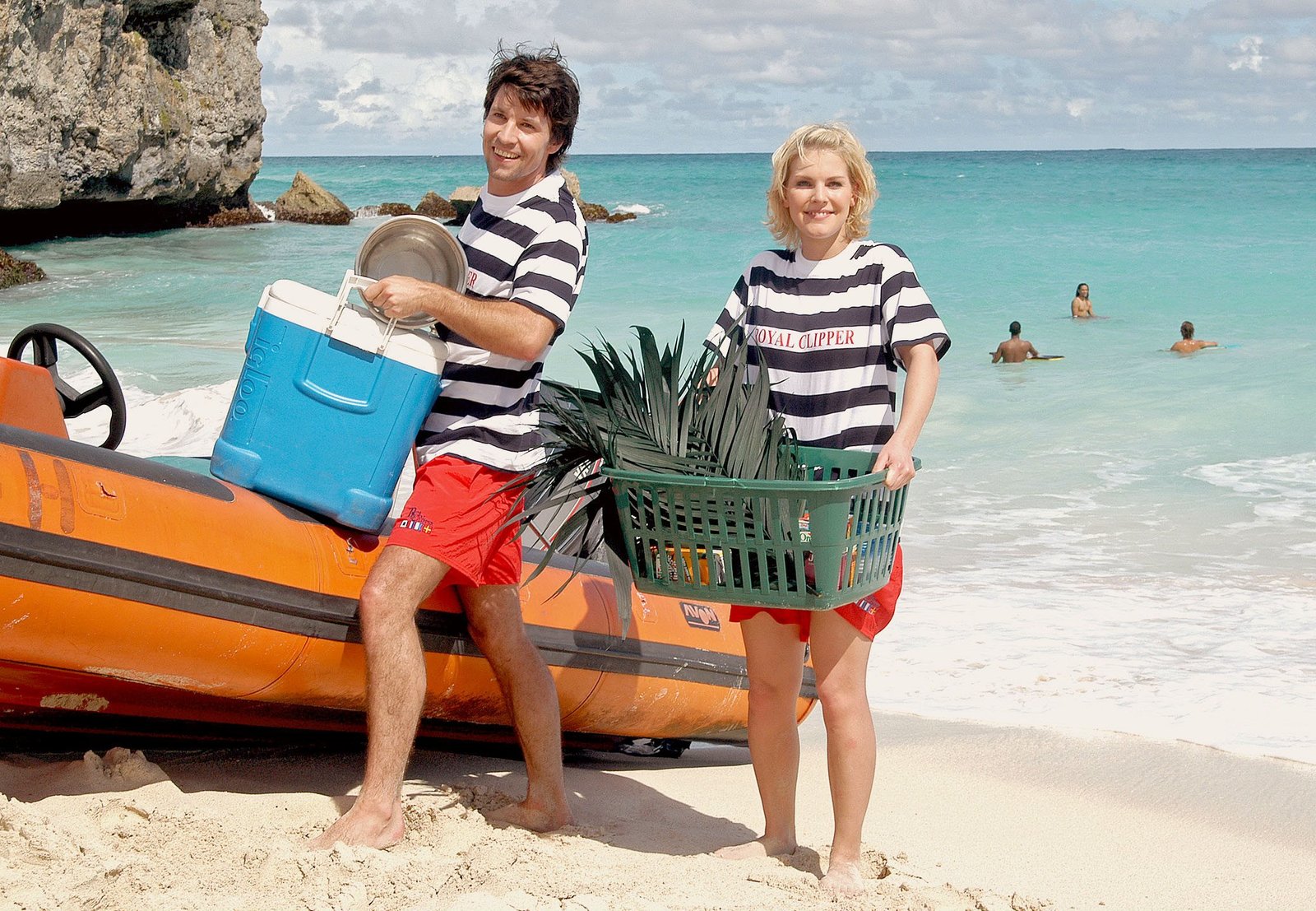 Kompass der Liebehr-fernsehen UNTER WEIßEN SEGELN - KOMPASS DER LIEBE, Spielfilm, Deutschland 2004, Regie: Bernhard Stephan, am Samstag (25.01.14) um 20:15 Uhr. Kapitän Arno Köhler (Robert Giggenbach) und seine Cruisedirektorin Marlene (Christine Neubauer).Bild: © HR/Degeto/Thomas Frischhut