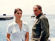 Liebe unter weißen SegelnDer Journalist Thomas Sand (Mark Keller) hat sich in die Marineärztin Dr. Karen Stendal (Christina Plate) verliebt.Bild: © ARD Degeto