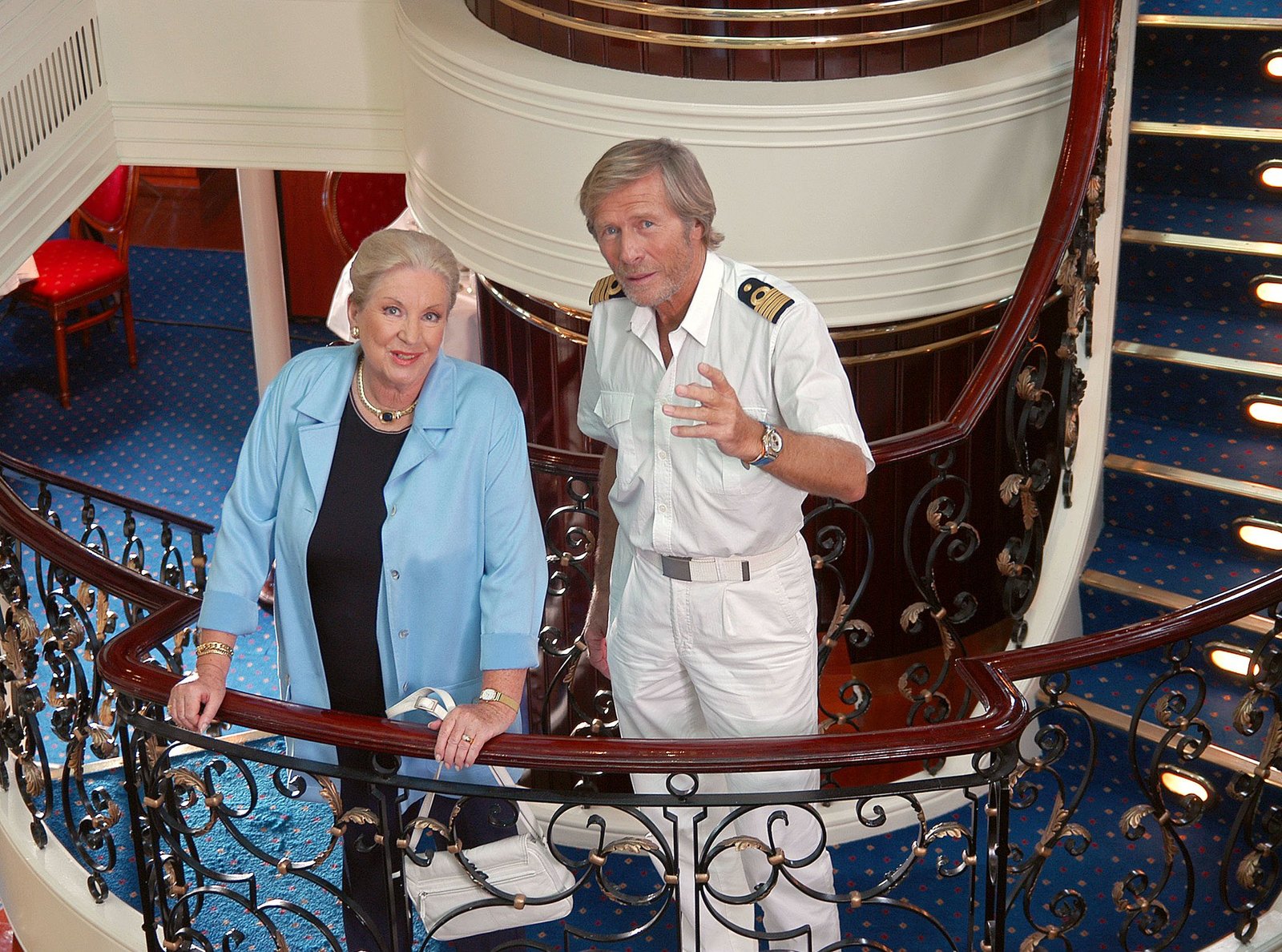 Träume am HorizontKapitän Jensen (Horst Janson) und seine Cruisedirektorin Saskia (Gerit Kling).Bild: © ARD Degeto/Mike Gast