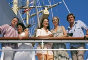 Träume am HorizontNDR Fernsehen UNTER WEISSEN SEGELN -TRÄUME AM HORIZONT, am Samstag (13.08.11) um 15:00 Uhr. Die Passagiere der "Star Flyer": Das Ehepaar Moritz (Sigmar Solbach, re.) und Wilma Fink (Daniela Ziegler, 2.v.re.), die beiden Freundinnen Beate (Sanne Schnapp, 2.v.li.) und Luise (Dorothea Schenck) sowie der schüchterne Physiker Dr. Karl Becker (Martin Weinek).Bild: © MDR/Degeto/Mike Gast