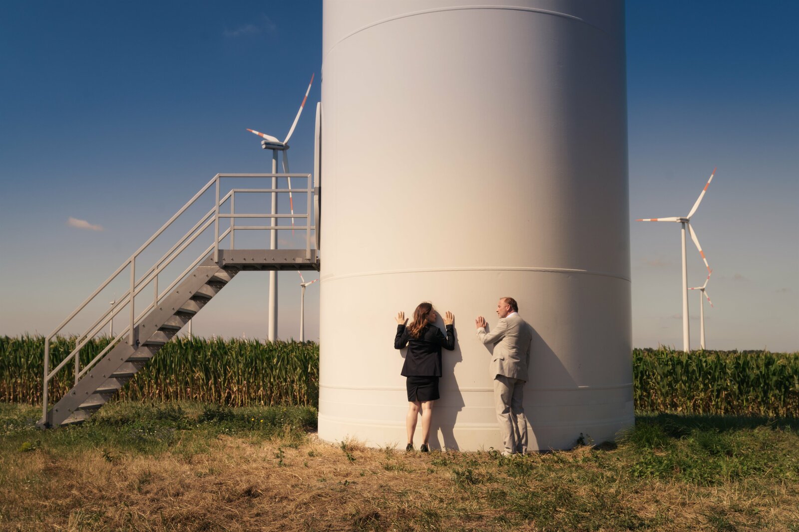 Folge 1Rudolf (Thomas Thieme) und Elena Grombrowski (Christine Schorn) sowie Hilde (Dagmar Manzel) und Betty Kessler (Sarina Radomski) erhoffen sich einen Vorteil vom Bau der Windräder.Bild: © ZDF und Stefan Erhard.