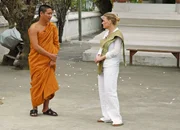 Laos - Elefanten, Seide und BuddhasModeratorin Andrea Jansen (r.) mit dem Mönch Pheng in Luang PrabangBild: © 3sat