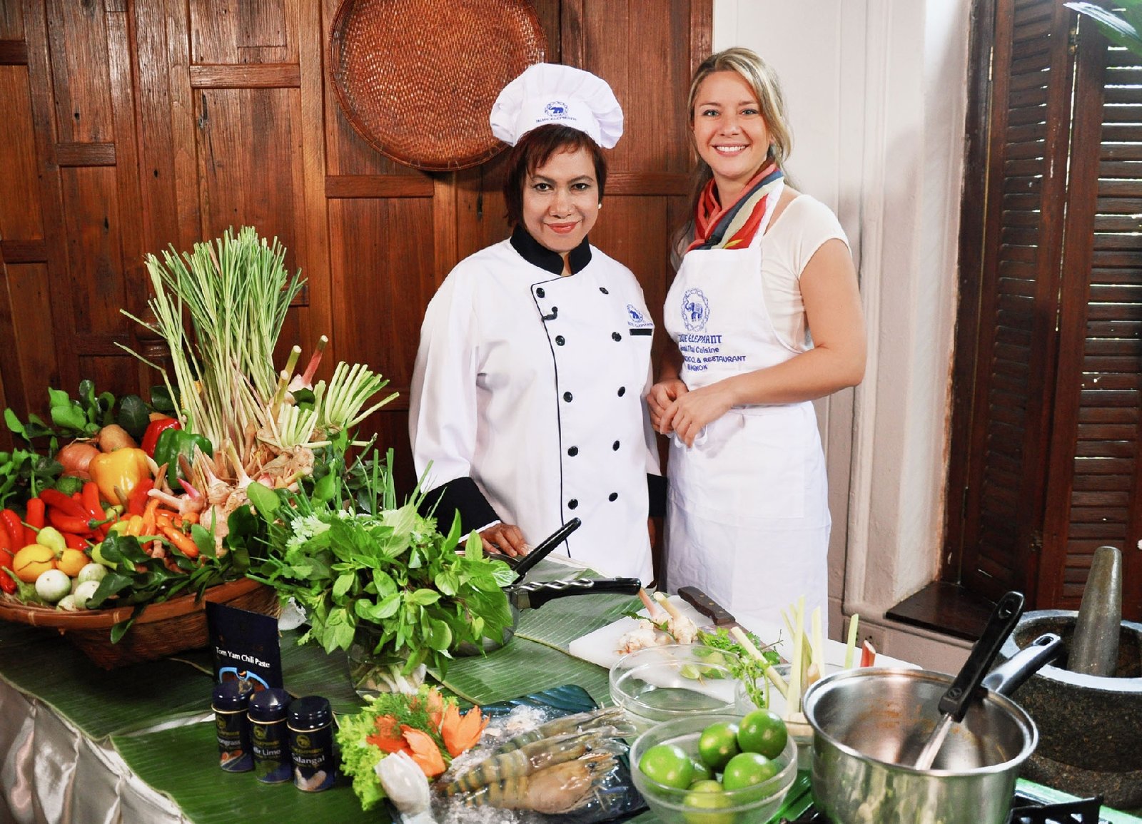 BangkokModeratorin Wasiliki Goutziomitros mit Chefköchin Nooror Soman-SteppeBild: © ZDF und SRF