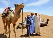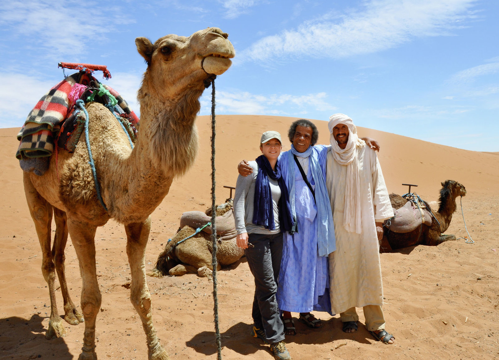 Marokko - Berge, Wüste und TeeModeratorin Wasiliki Goutziomitros (l.) mit einer NomadenfamilieBild: © ZDF und SRF
