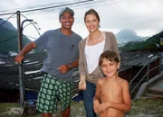 Brasilien - Karneval, Strände und FavelasModeratorin Wasiliki Goutziomitros mit Leandro (25), der in der Favela Santa Marta in Rio de Janeiro zum Touristenguide ausgebildet wird und Touristen durch die Favela führt - Mit im Bild der Sohn von LeandroBild: © ZDF und SRF/BENI LEONI
