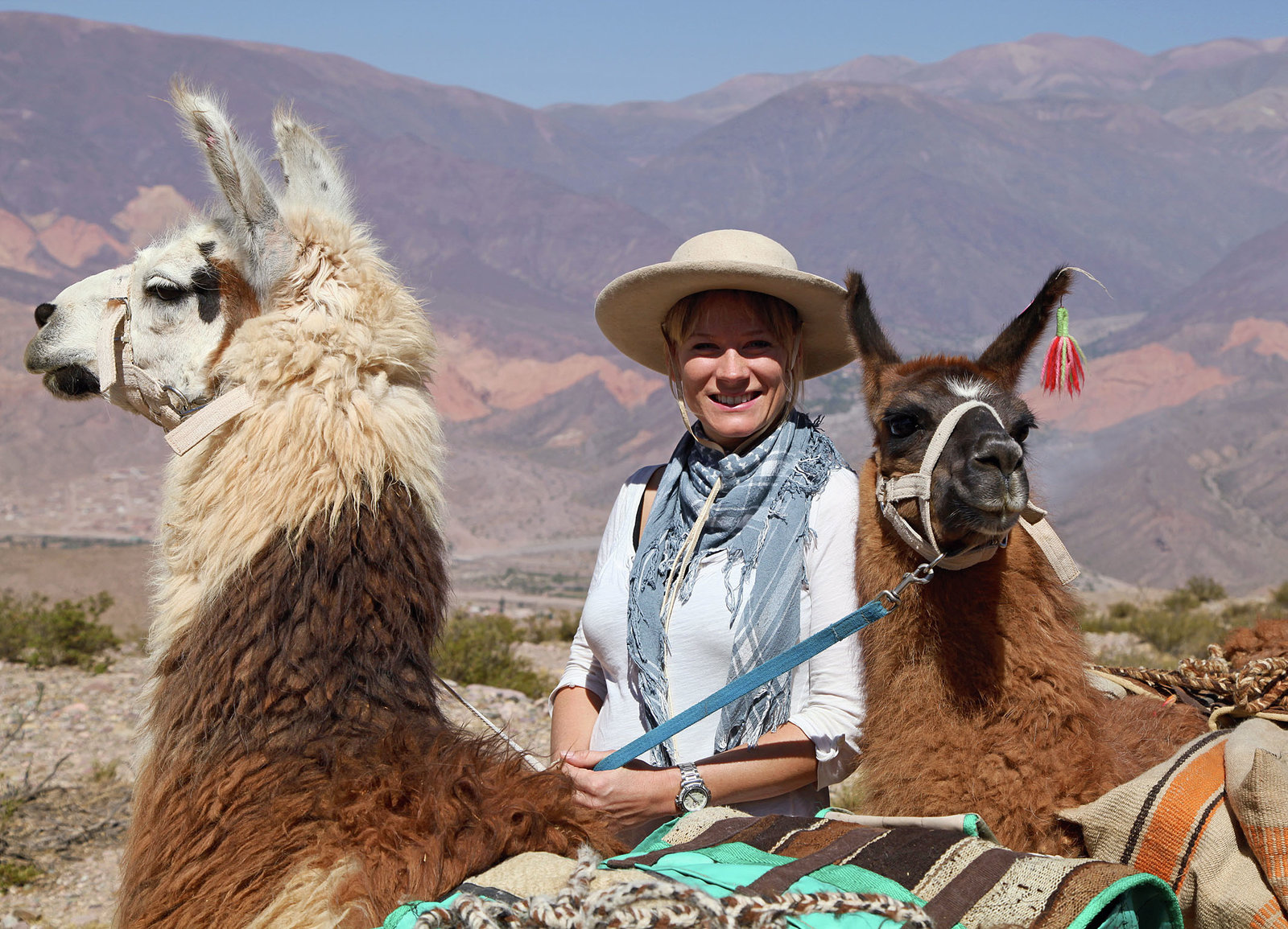 Argentinien, der NordenModeratorin Andrea Jansen bei den LamasBild: © ZDF und SRF