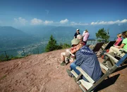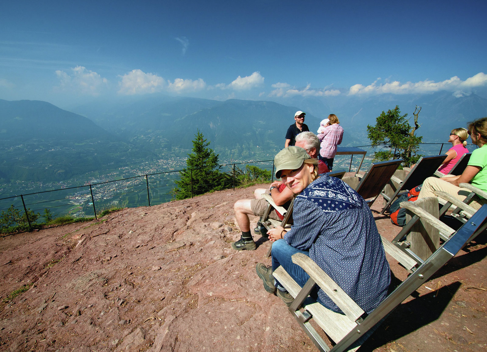 SüdtirolModeratorin Andrea Jansen (vorne l.) auf dem Knottnkino oberhalb MeranBild: © ZDF und SRF