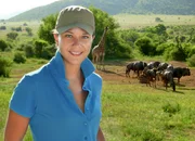 SüdafrikaSF unterwegs - Südafrika Von Kapstadt zum Krüger-Nationalpark Moderatorin Wasiliki Goutziomitros auf Safari im PilanesbergBild: © ZDF und SRF