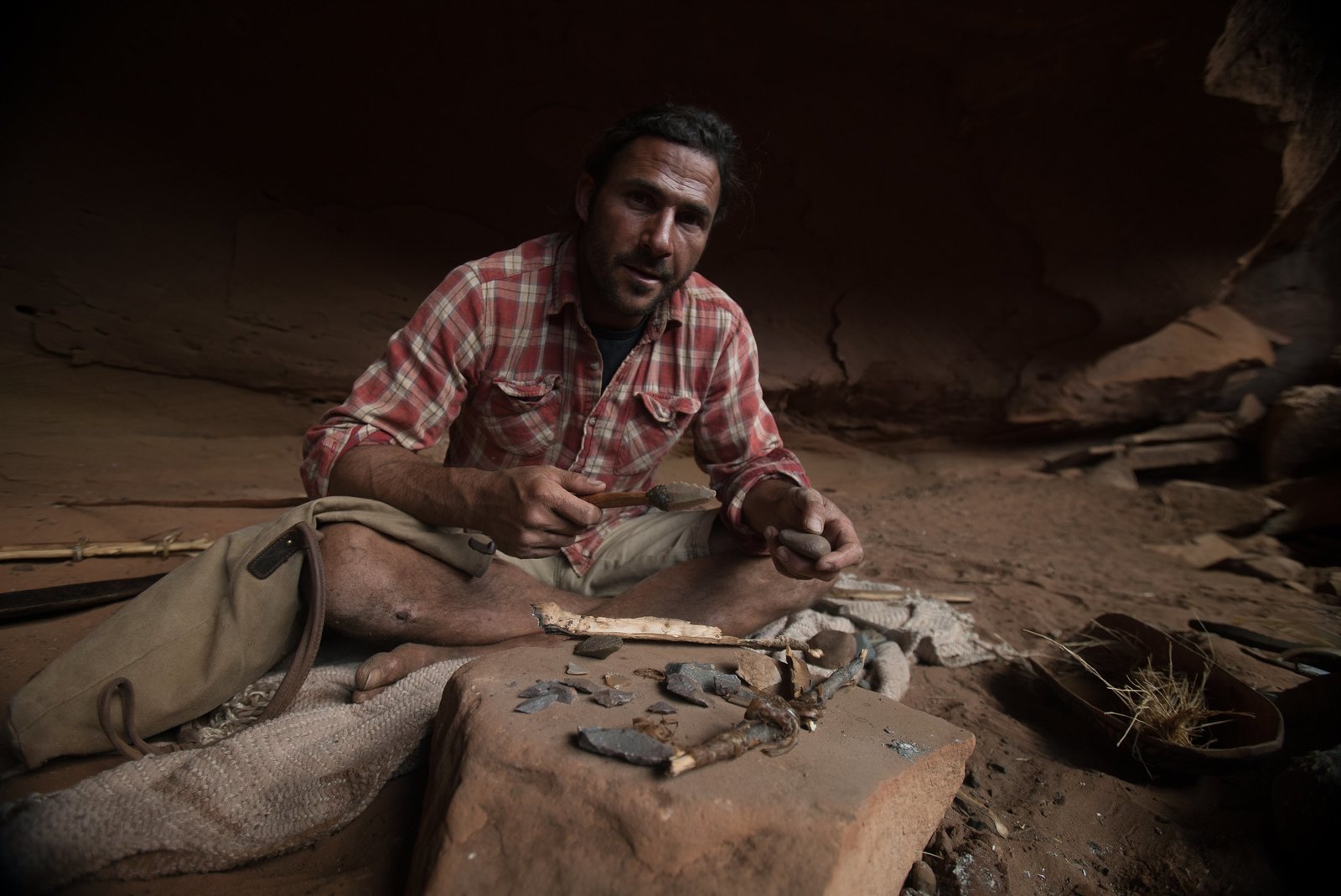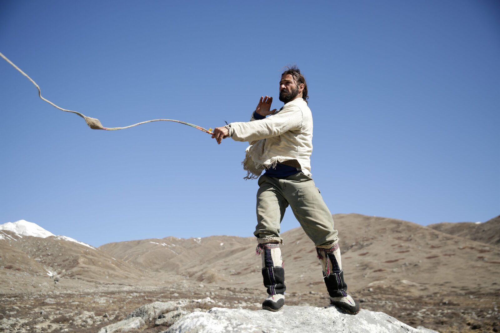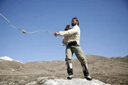 Im Hochgebirge des HimalayaMustang, Nepal: Hazen practicing using a slingshot. (Photo Credit: INational Geographic Channels/ Stuart Trowell)Bild: © Copyright © The National Geographic Channel.