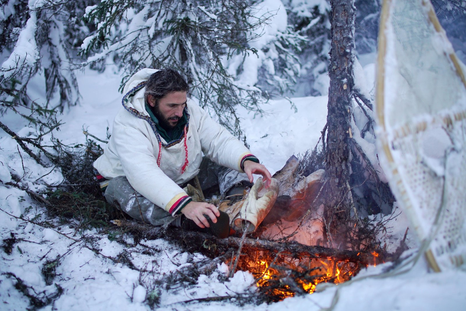 Im Land der KaribusHazen wärmt seine Handschuhe am Feuer.Bild: © TVNOW / © 2017 National Ge