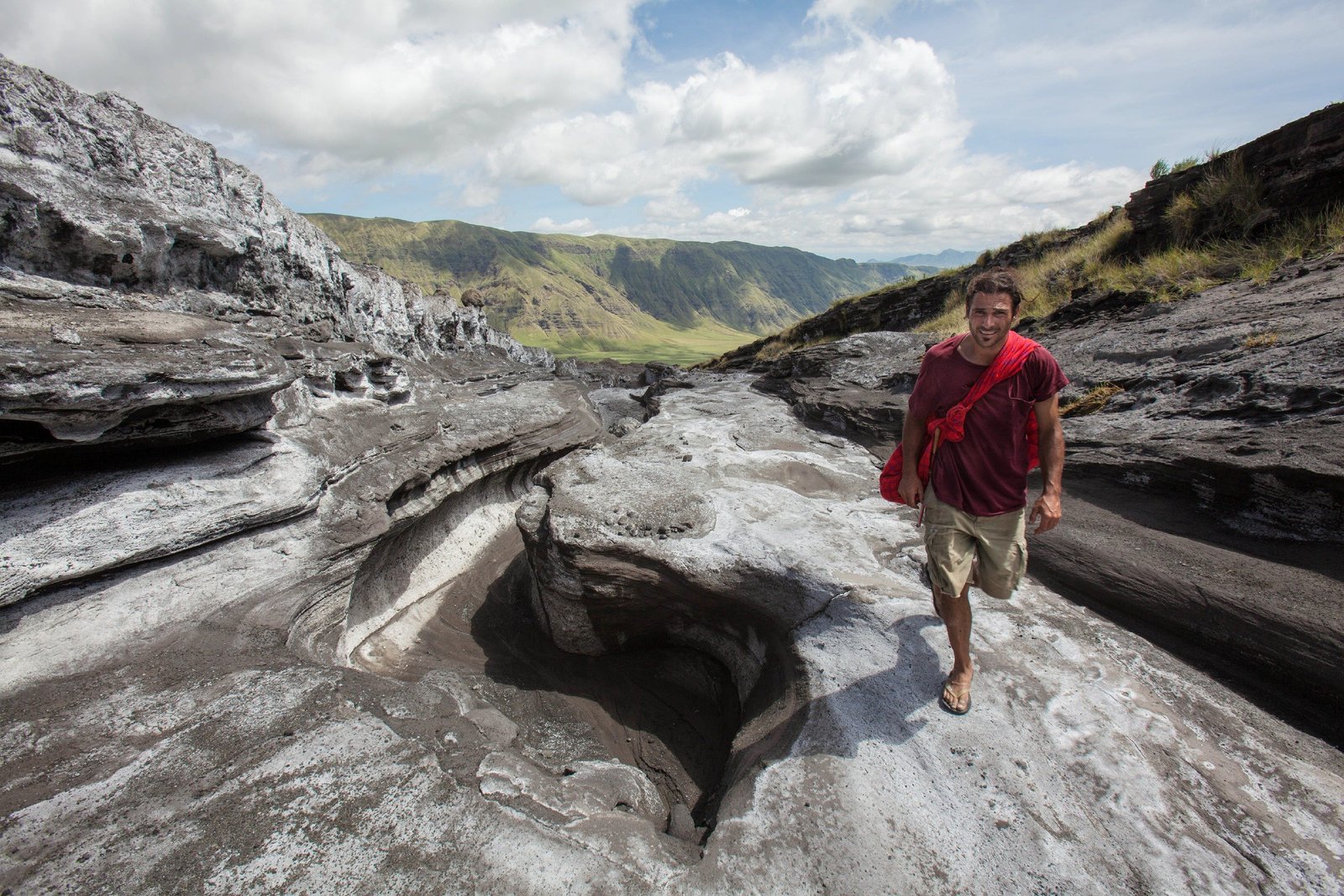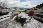 Gefährlicher AufstiegHazen geht auf einem erstarrten Lavastrom auf den Vulkan zu.Bild: © TVNOW / © 2016 National Ge