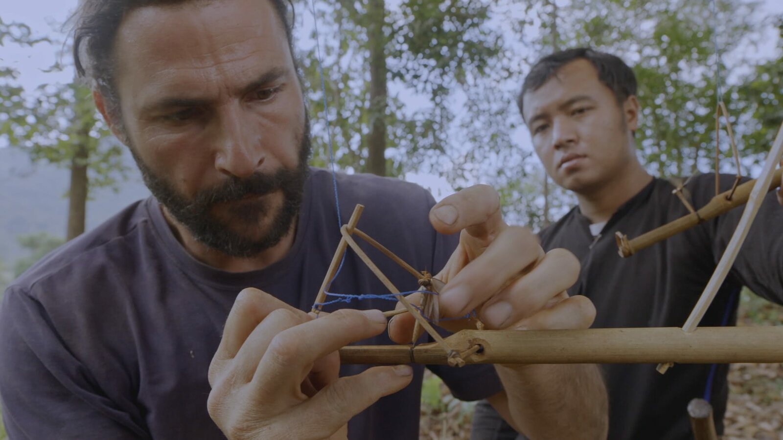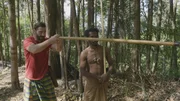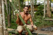 Reißende StrömeHazen hat eine Furche in einen Bambus geschnitten, um Platz für eine Querstange im Floß zu schaffen.Bild: © TVNOW / © 2016 National Ge